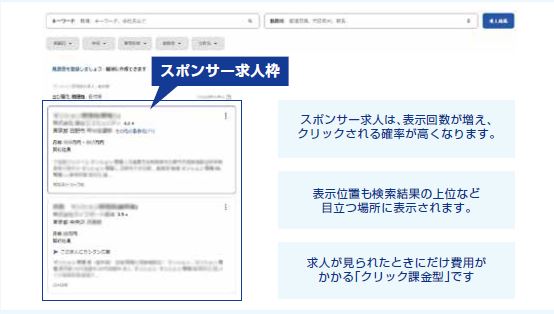 無料で求人を掲載することができ、さらに表示回数を増やし求 職者の目に留まりやすくなる有料オプションも用意されています。