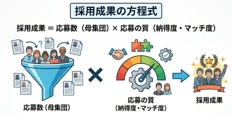 採用活動の成功は、「応募数」×「応募の質」の掛け算で決まります。