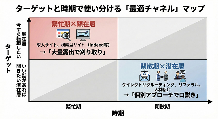 求職者の動きが活発でない時期と活発な時期、どちらのタイミングで中途採用を実施するほうがいいでしょうか?