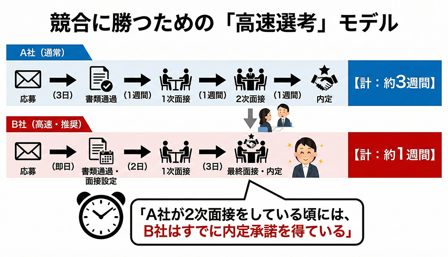 12月のギリギリのタイミングで採用活動を開始し、決して応募者は多くないもののスムーズに選考スケジュールを組むことで、年始からいい人に来てもらうことができた、という話はよく耳にするケースです。