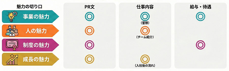 事業の魅力 → 「仕事内容」の冒頭や「PR文」へ