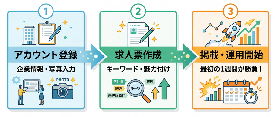しかし、重要なのは「登録作業」そのものではなく、掲載した直後の「最初の1週間」をどう過ごすかです。